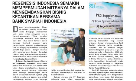 REGENESIS INDONESIA SEMAKIN MEMPERMUDAH MITRANYA DALAM MENGEMBANGKAN BISNIS KECANTIKAN BERSAMA BANK SYARIAH INDONESIA